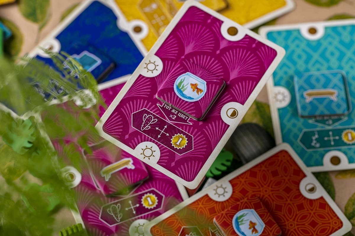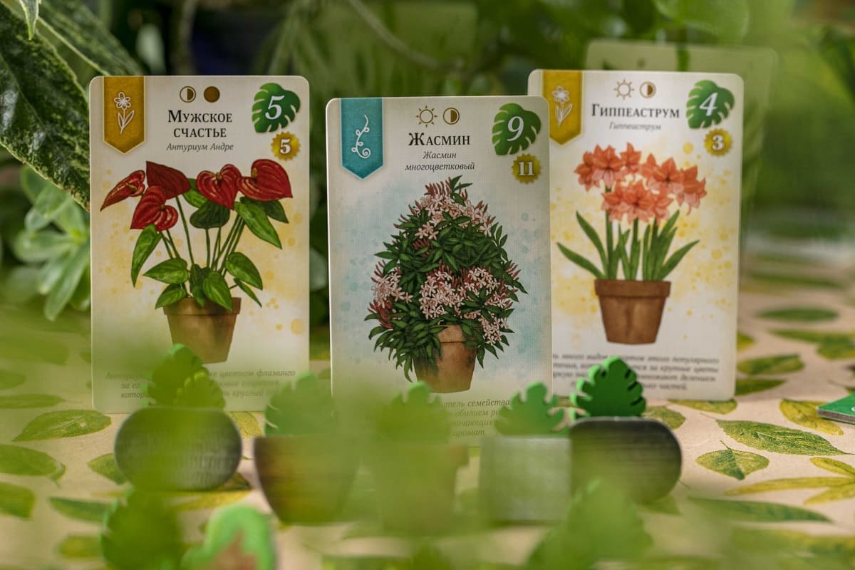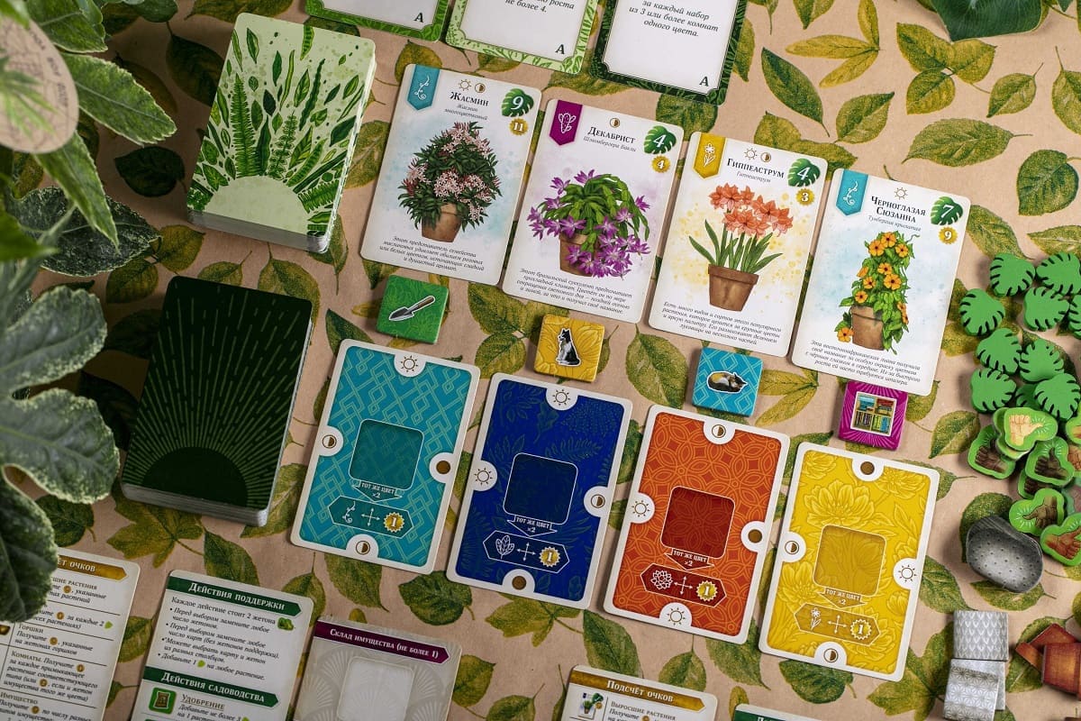 Каждый раунд игроки будут выбирать набор из жетона и карты. Располагая комнаты и цветы в шахматном порядке, нужно учитывать и цвет комнат, и количество света, требуемое для располагаемых в них растений. Обязательно также требуется поливать и удобрять цветы, чтобы они росли быстрее! Ведь чем больше зелени будет в вашей уютной квартире, тем больше победных очков вы получите в конце партии.
