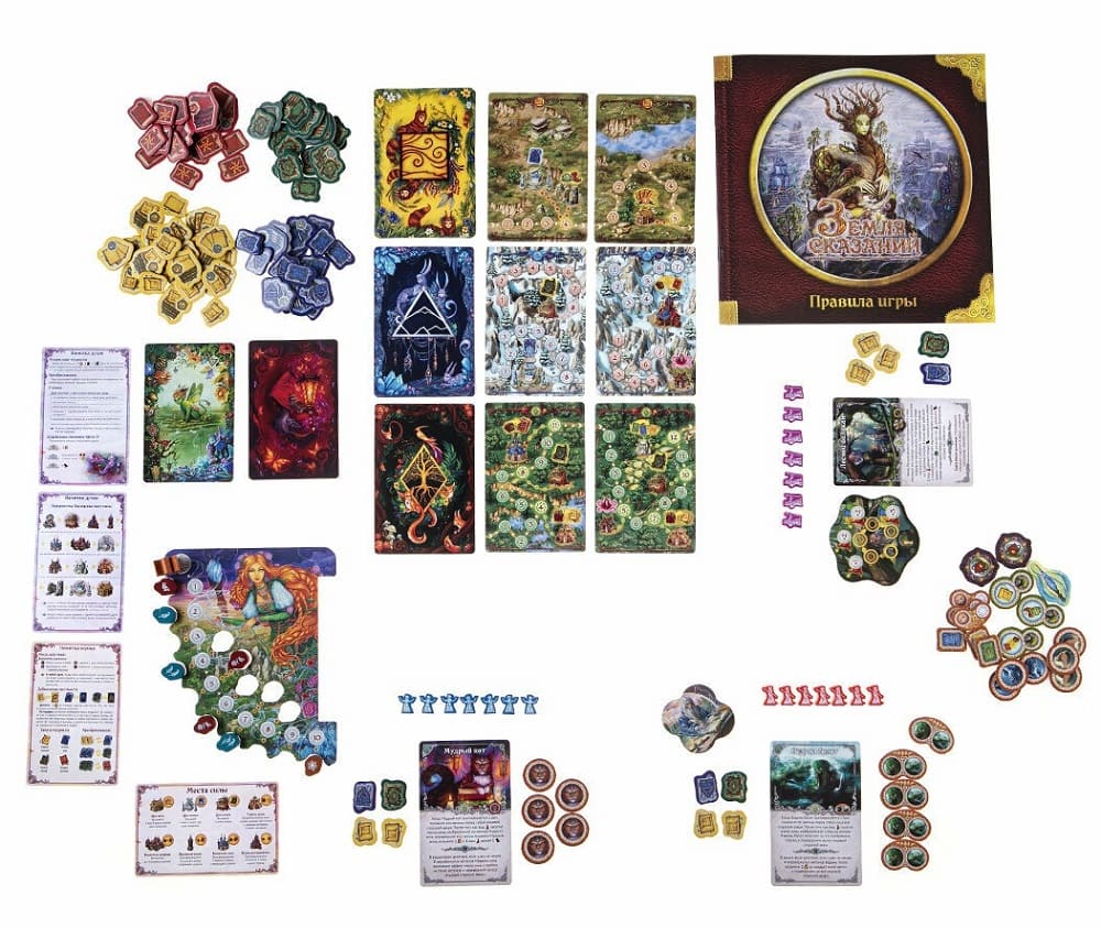 «Земля сказаний» – это карточная настольная игра, в которой участники принимают на себя роль героя и отправляется в захватывающее путешествие по фантастическому миру. Рассчитана она на компанию от 1 до 5 человек возрастом старше 14 лет. Помимо основного соревновательного режима игры, «Земли сказаний» также имеет кооперативный и соло-режимы.