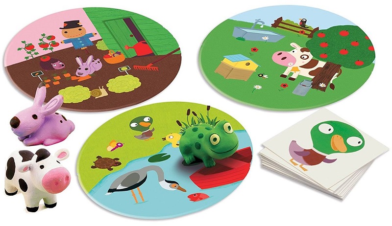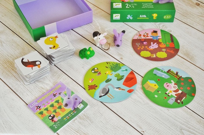 Процесс игры «Зверята» от Djeco состоит в сопоставлении 3 животных (кролика, лягушки и коровы) с тремя местами их обитания (луг, пруд, и огород). Но делать это сопоставление необходимо через карточки, на которых указаны общие для объектов свойства. Например, выпала карточка с морковкой, игрок должен быстро схватить кролика и поставить его на огород; если выпала стрекоза – отправляем лягушонка на пруд. Игрок, первым правильно выполнивший задание, забирает карточку себе. Участник, набравший в ходе партии больше всего карточек становится победителем игры «Зверята».