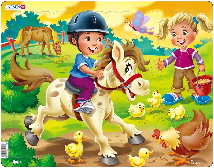 Красочный пазл от норвежского бренда Larsen расскажет малышу об увлекательной жизни на ферме. На готовом изображении представлена девочка, катающаяся на пони, а также множество дополнительных деталей и персонажей, которые делают сборку пазла еще более увлекательным занятием.
