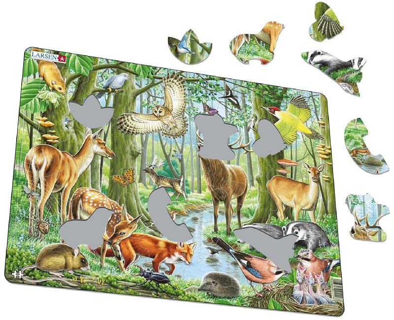 Обучающий пазл Ларсен познакомит детей с лесными жителями. Ребенку будет интересно собирать картинку из отдельных деталей, чтобы увидеть всех зверюшек.