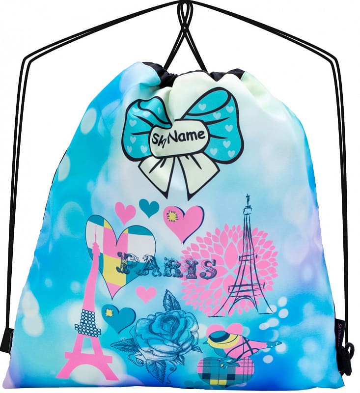 Школьный мешок для сменной обуви SkyName M-140 Paris. Материал - полиэстер. Горловина мешка затягивается на шнурки, которые также служат ручками для переноски. Размер мешка в разглаженном состоянии 40 на 45 сантиметров.