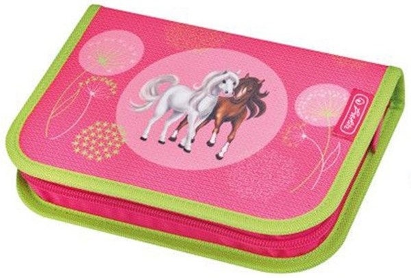 Пенал без наполнения Herlitz Horses для девочек имеет одно большое отделение на молнии с одной откидывающейся створкой. Вашему ребенку не надо будет долго искать нужную ему вещь и в тоже время в него поместится все самое необходимое. Пенал имеет прочную обложку и жесткий кант. Нежная розовая расцветка пенала с рисунком двух лошадок придется по нраву юным наездницам.