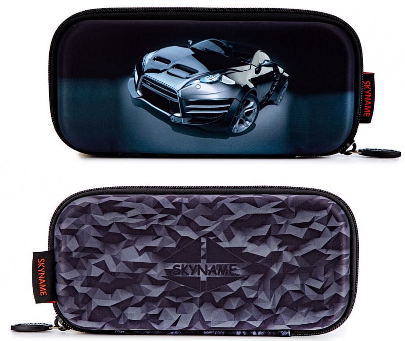 Школьный пенал для мальчика SkyName P-339 имеет жесткий каркас, надежно защищающий содержимое от поломок. Сверху покрыт приятным на ощупь материалом и украшен рисунком спортивной машины.