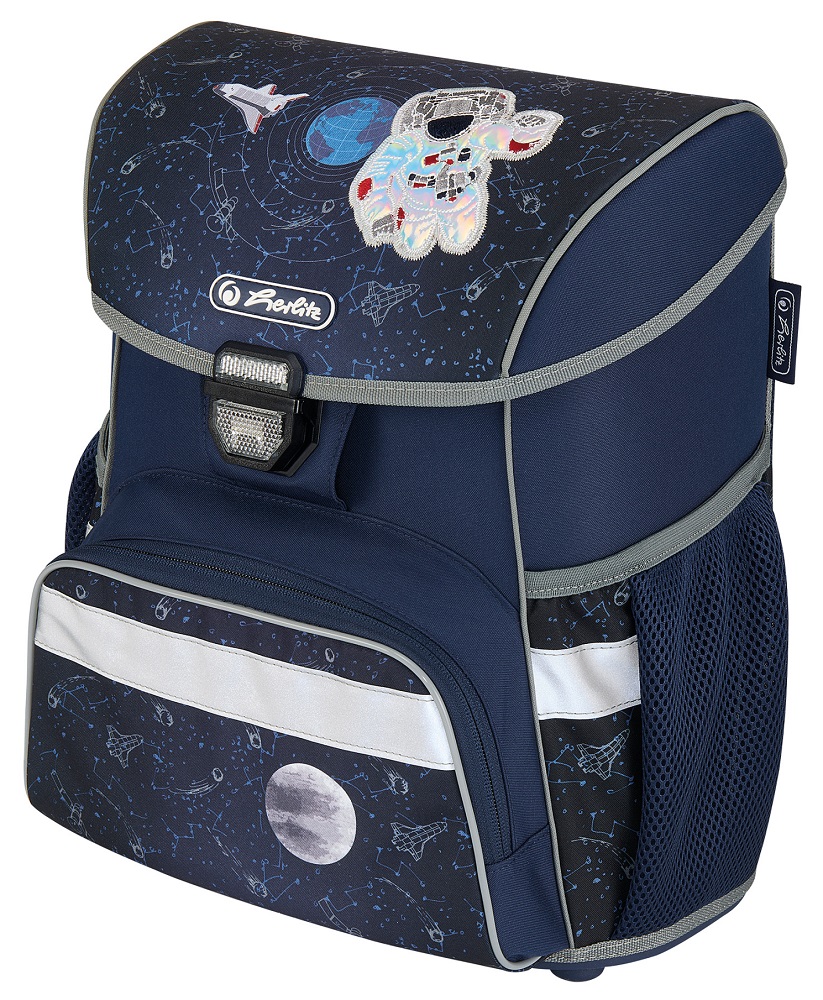 Школьный ранец Herlitz LOOP Space - это новинка 2020 года от Herlitz. Особенностью ранцев серии LOOP является дизайнерская обтекаемая форма со сглаженными краями, твердое пластиковое дно, современные прочные материалы, использование которых, позволило довести вес ранца до 900 грамм. Ранец Herlitz Space из серии LOOP разработан для мальчиков-первоклассников. Он имеет немаркую синюю расцветку и украшен рисунками космических аппаратов и космонавта на клапане и торцевом кармане. Ранец изготовлен из прочной непромокаемой синтетической ткани, которая защищает содержимое от намокания при попадании осадков.