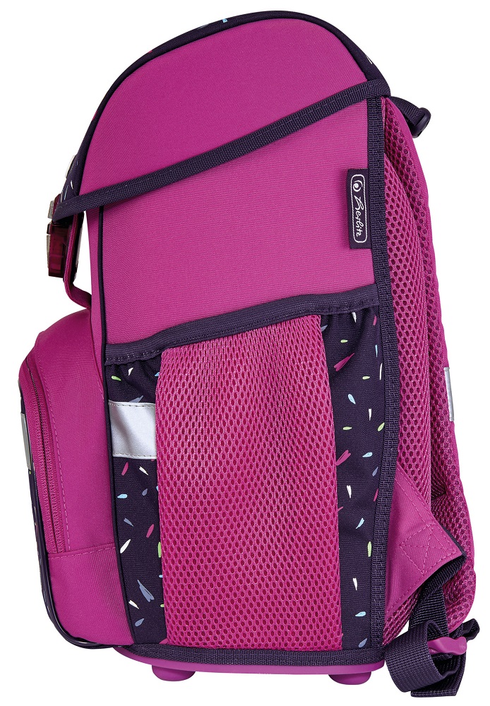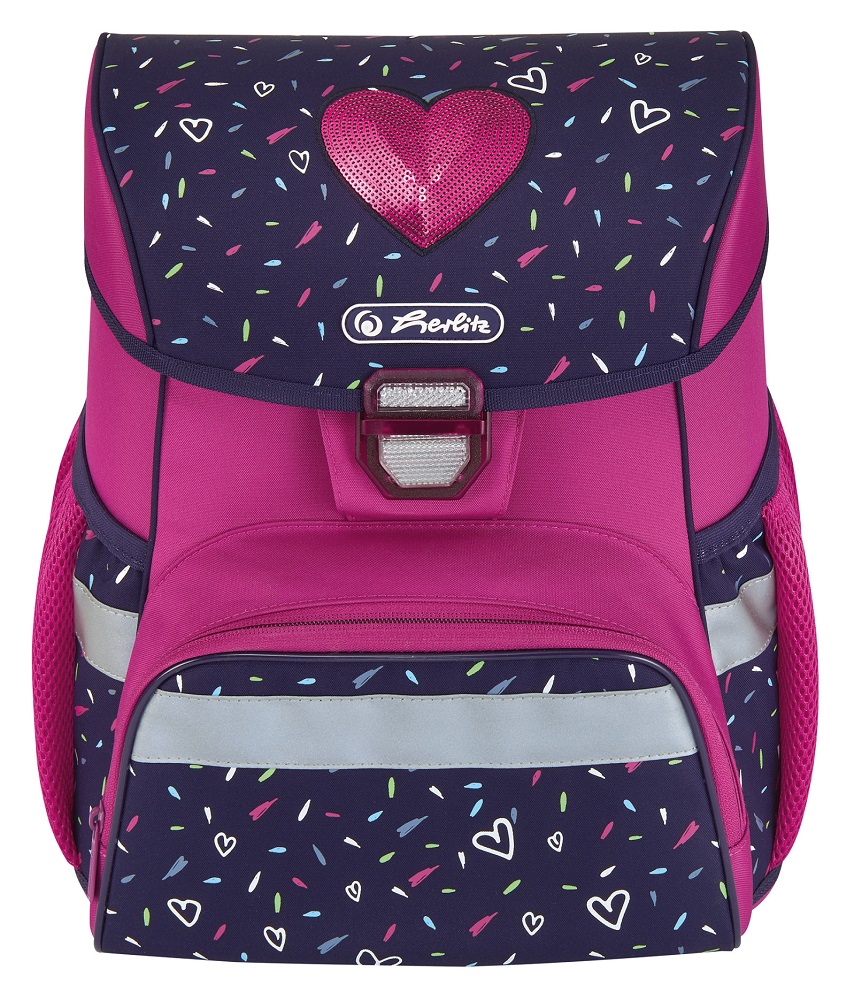 Школьный ранец Tropical Heart с наполнением из серии LOOP PLUS - модель 2020 года от Herlitz. Особенностью данной серии ранцев является дизайнерская обтекаемая форма со сглаженными краями, твердое пластиковое дно, современные прочные материалы, использование которых, позволило довести вес ранца до 900 грамм. Ранец LOOP Tropical Heart разработан для девочек-первоклассниц. Он имеет не маркую сине-фиолетовую расцветку украшен рисунком красного сердца. Ранец изготовлен из прочной непромокаемой синтетической ткани, которая защищает содержимое от намокания при попадании осадков. Ранцы Herlitz серии LOOP имеют следующие конструктивные особенности: