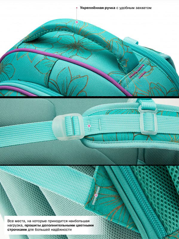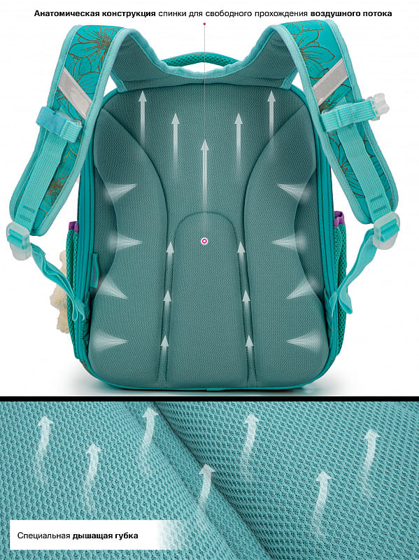 - Светоотражающие элементы на передней, задней и боковых частях ранца;