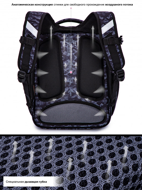 - Светоотражающие элементы на передней, задней и боковых частях ранца;