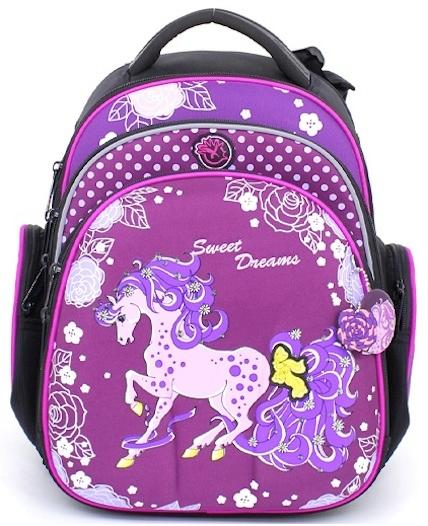 Школьный рюкзак для девочек 1-3 класса Hummingbird TK63 Sweet Dreams из серии Kids. Главная особенность рюкзаков серии KIDS - жесткий формованный каркас, делающий похожими эти рюкзаки на ранцы. Единственное их отличие от ранцев - отсутствие верхнего клапана. Модель TK63 имеет гармоничную сиреневую расцветку. Фронт рюкзака украшен рисунком волшебной лошади.