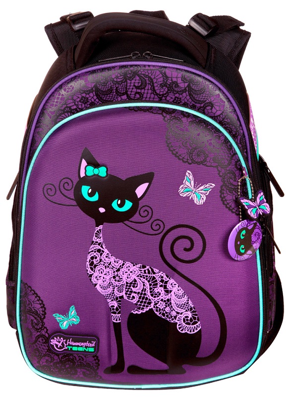Школьный рюкзак для девочек Hummingbird T71 Черная кошка относится к серии T (Teens) производителя. Основная особенность рюкзаков этой серии - жесткие боковины и фронт, что делает их очень похожими на ранцы. Актуальную фиолетовую в сочетании с черным расцветку рюкзака с контрастными бирюзовыми вставками и рисунком черной кошки в кружевах оценят многие юные последовательности моды. Основные конструктивные особенности рюкзака Hummingbird T71 следующие: