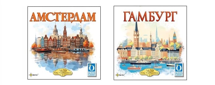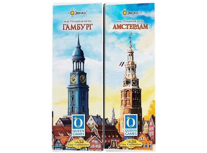 Ожидаемая многими локализация игр из «Городской коллекции» от Queen Games «Гамбург» и «Амстердам» стали поступать в продажу, скоро появятся и в нашем магазине. Поздравляем издательство «Эврикус» с реализацией знакового проекта!