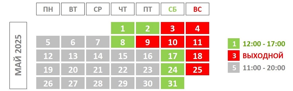 В рабочие дни офиса осуществляется курьерская доставка и передача заказов логистическим операторам (кроме 5 мая).