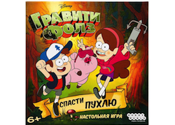 Настольная игра «Гравити Фолз: Спасти Пухлю» предлагает своим участникам отправиться на поиски пропавшего поросенка Пухли. В целом игра представляет из себя ходилку, но ее простое передвижение по полю с бросками кубика щедро сдобрено различными приключениями, которые даны на игровых картах.