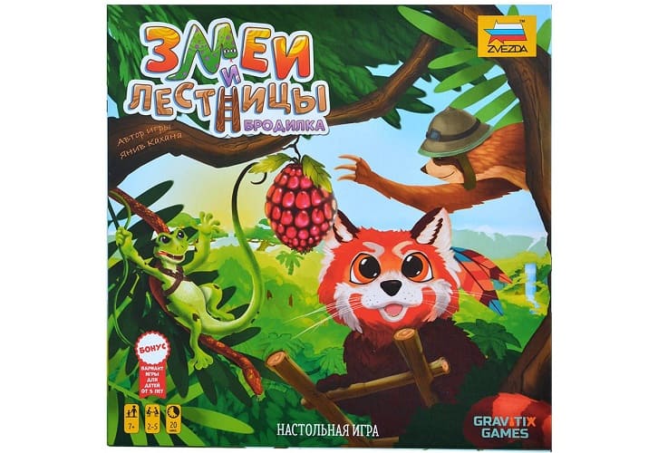 Представляем новинку от издательства «Звезда» - детскую настольную игру «Змеи и лестницы: Бродилка». Как не трудно догадаться из названия, это игра-ходилка, в которой в которой игрокам необходимо на перегонки преодолеть игровое поле и первым добраться до редкого плода хрустофрукта.